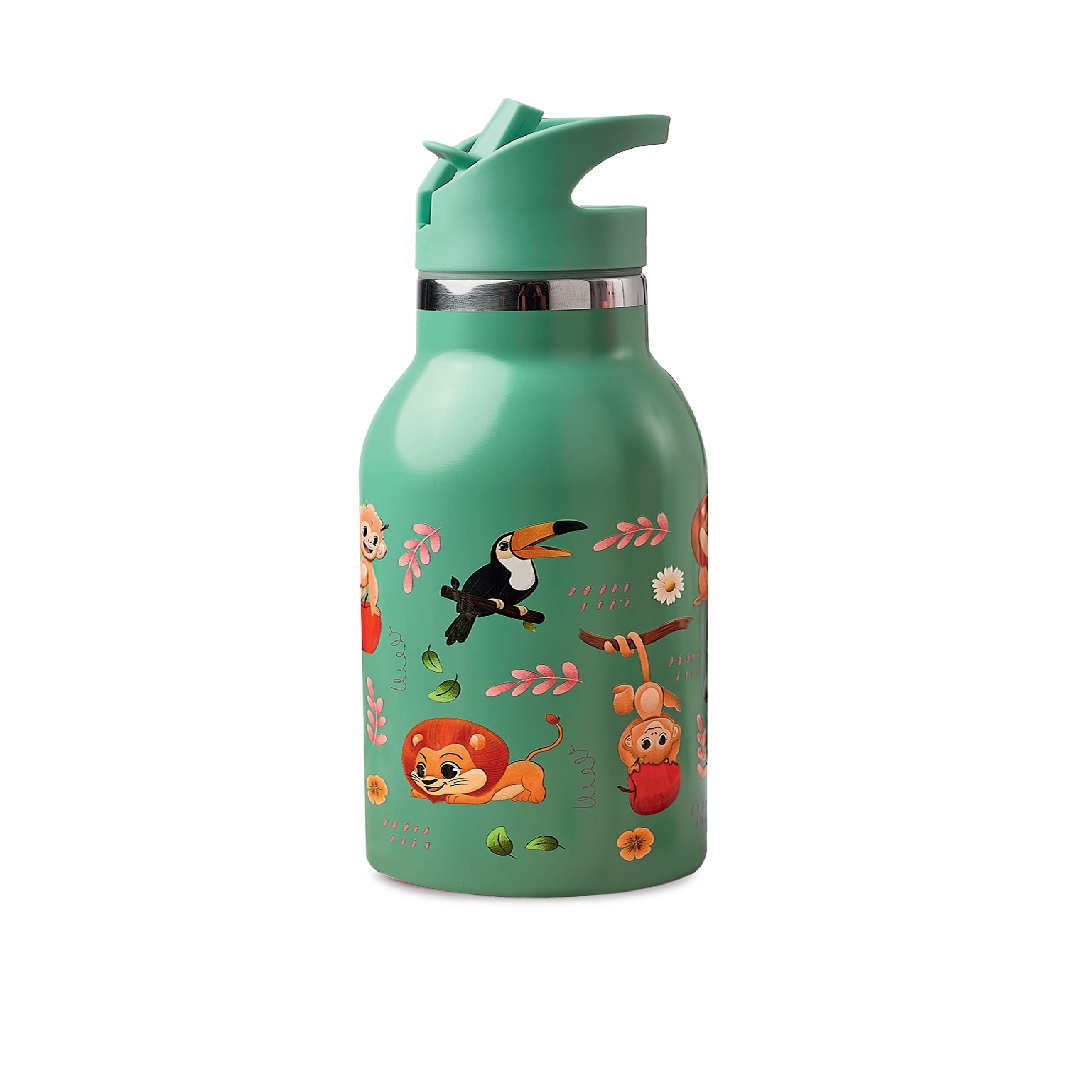 Grazie ai due tappi intercambiabili, offre massima versatilità, permettendo di gustare comodamente sia bevande fresche e dissetanti durante le giornate più calde, sia tisane o bevande calde nei mesi invernali. Il suo design vivace e giocoso, arricchito da colori brillanti e fantasie divertenti, stimola i bambini a bere con piacere, trasformando un’abitudine quotidiana in un gesto allegro e naturale.