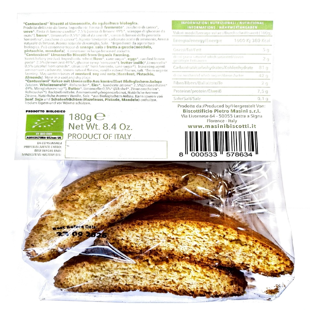 Cantuccioni Bio al Limoncello del Biscottificio Pietro Masini, croccanti, profumati e preparati artigianalmente con ingredienti biologici. Un classico toscano dal gusto genuino e irresistibile.