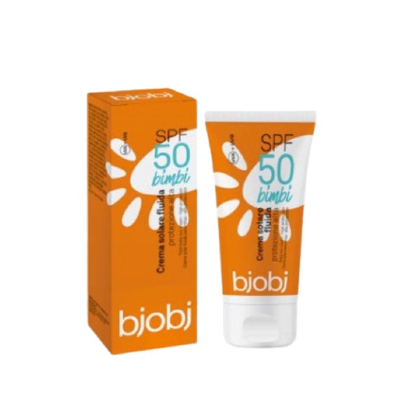 Crema solare fluida SPF50 Bimbi di Bjobj, una protezione solare ad alta efficacia, appositamente formulata per la pelle sensibile e delicata dei più piccoli.
