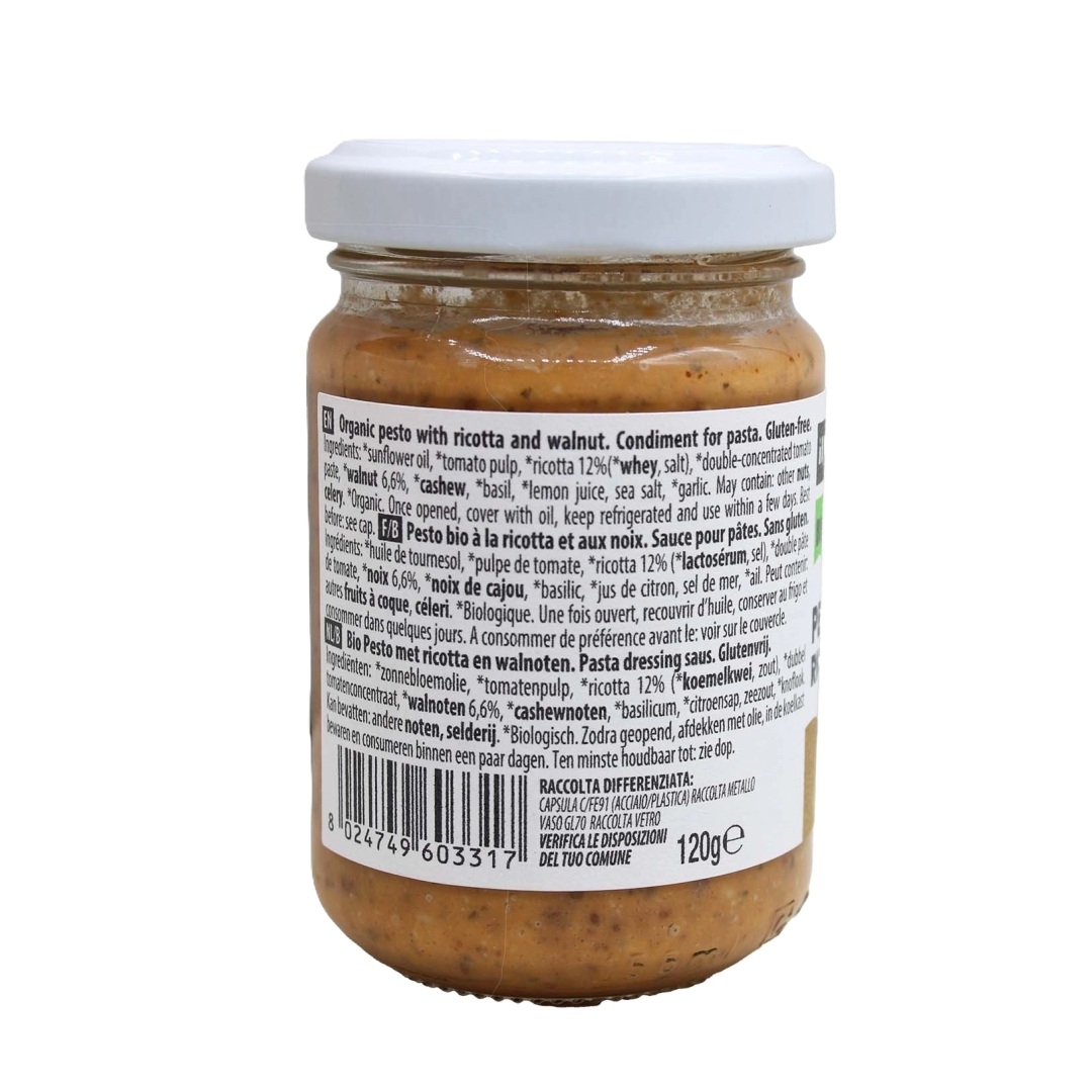 Realizzato con ingredienti biologici certificati e senza glutine, questo pesto racchiude la semplicità e la bontà della cucina naturale, offrendo una consistenza cremosa e un gusto armonioso che conquista al primo assaggio.
